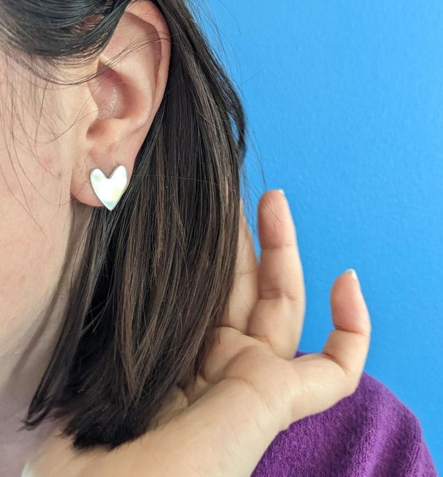 Ces petits cœurs pour oreilles sont fabriqués à partir d'un CD 100% culte, transformé en bijoux unique et responsable. Chaque pièce est découpée puis résinée dans mon atelier artisanal à Septeuil, dans les Yvelines.