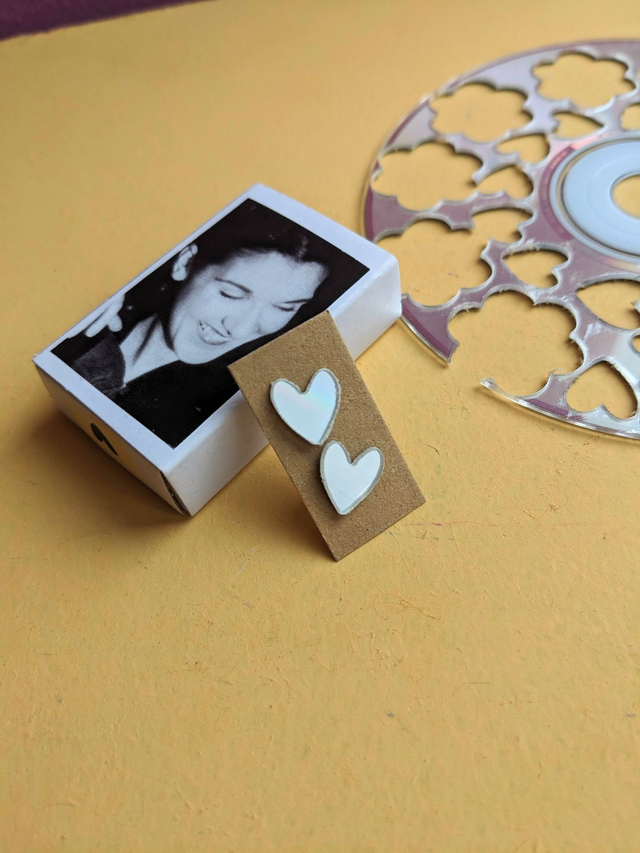 Ces petits cœurs pour oreilles sont fabriqués à partir d'un CD 100% culte, transformé en bijoux unique et responsable. Chaque pièce est découpée puis résinée dans mon atelier artisanal à Septeuil, dans les Yvelines.