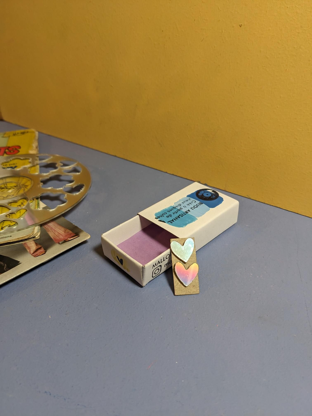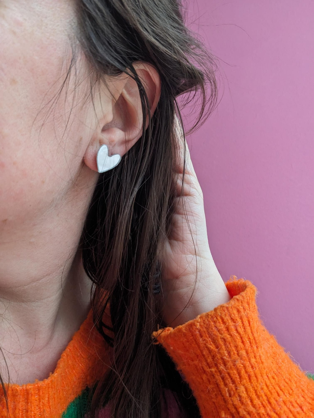 Ces petits cœurs pour oreilles sont fabriqués à partir d'un CD 100% culte, transformé en bijoux unique et responsable. Chaque pièce est découpée puis résinée dans mon atelier artisanal à Septeuil, dans les Yvelines.