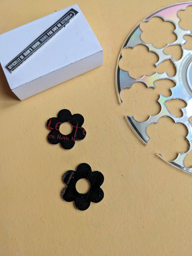 Ces pampilles fleurs pour créoles sont fabriquées à partir d'un CD 100% culte, transformé en bijoux unique et responsable. Chaque pièce est soigneusement découpée puis résinée dans mon atelier artisanal à Septeuil, dans les Yvelines.