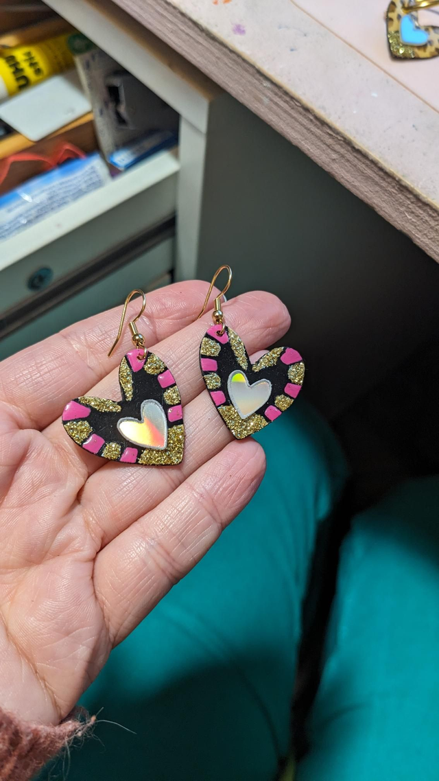 Des pampilles à la fois pour tous les amoureux de nostalgie, des années 80 et 2000, de Pink, de Barbra Streisand, de pensées solidaires…ou juste de jolies boucles d’oreilles upcyclées colorées et qui brillent!